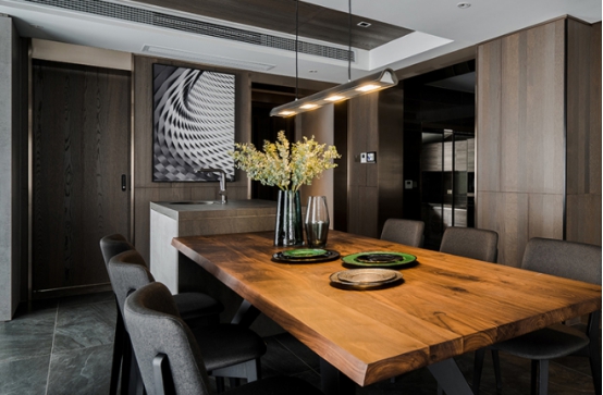 餐桌的形状有的是方形的有的是圆形的,具体怎么选择还是要根据业主的需要家庭成员的人数来做考虑,另外也要注意空间的搭配协调性,比如空间比较大的,或者是有独立餐厅的,家里人口有比较多那么就可以选择大圆桌,基本能做8-10人可以满足一家人的用餐需要。如果家里面积比较小,客餐厅一体的,要是放个大圆桌要占用一大片面积,这样就得不偿失了,这样的情况就适合用方形餐桌,方形餐桌占地方小,看着也很好看,家里有两三口人,那么就可以靠墙摆放还不占用空间,不过靠墙的墙面最好做一下遮挡,可以选择做一条瓷砖马赛克或者是玻璃等材质的,这样就可以避免吃饭喷溅一下菜汤饭粒。