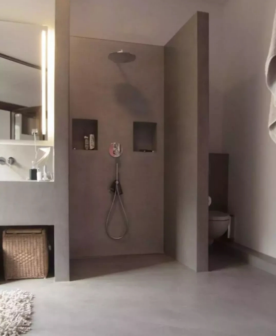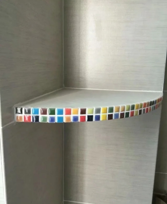 还有卫生间一些管道转角区域也不能浪费,可以根据空间来做一些壁龛来增加收纳空间,还有卫生间的墙体边角处可以做小隔板,这种小隔板也可以放洗发水或者是一些小东西,使用起来也是非常方便。