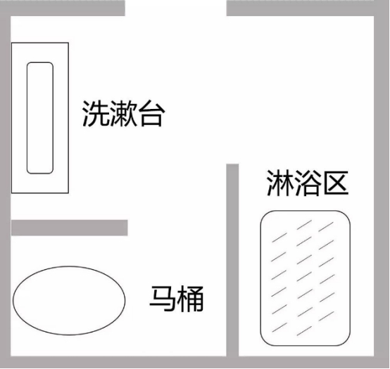 比如正方形的卫生间,洗漱区与马桶是平齐的,一般洗漱区靠近门口,马桶在最里面,这样的设计是最合理的,使用起来也会很方便。