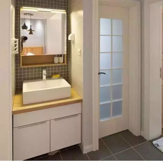 如果说卫生间空间确实是很小不是很够用,那么就可以把洗漱台外移到卫生间外面,这样也可以节省不少空间。