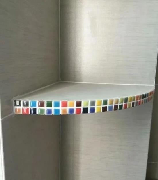 还有一些墙角也不能浪费,可以做一些砖砌的小隔板,这种小隔板是有两片瓷砖夹在一起,并且是卡进瓷砖墙体里面的,这样就保证了结实耐用,不会像一些网红免打孔挂架,时间长了会自己掉下来。这种小隔板不是故意的破坏它,用个几十年都没有问题。