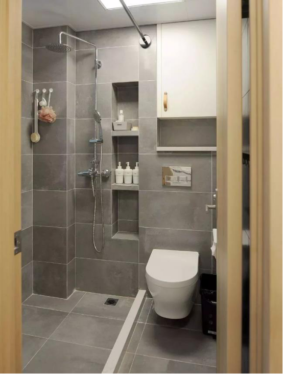 卫生间空间一般都是比较小,那么就要把有限的空间利用起来,比如可以利用管包管地方做壁龛,壁龛可以放很多的洗浴用品,还不怕潮湿,脏了用水一冲就可以了。不仅增加了储物空间而且更实用方便。
