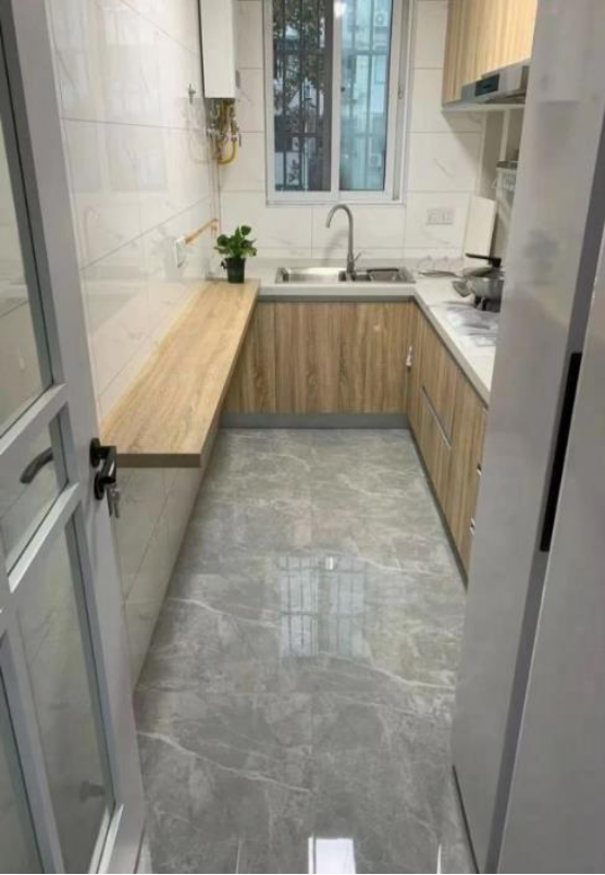 装有的厨房面积比较小,不能做u型的橱柜,那么就可以考虑做一个折叠的小隔板在,这样的小隔板可以放一些小东西,不用的时候还可以折叠起来,使用起来非常方便。
