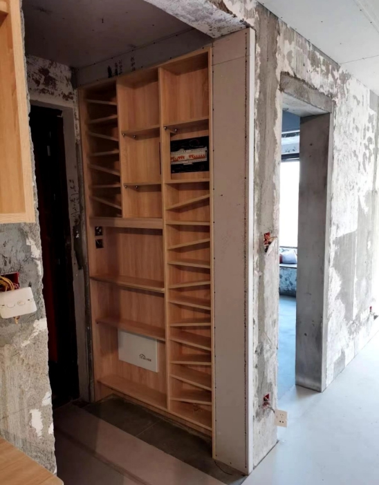 玄关的空间做好鞋柜的设计,也可以充分的利用空间,有的户型旁边就是厨房,会一面墙作为分隔。我们在布局玄关的就可以利用这面墙,可以把墙敲掉做一面嵌入式的鞋柜,这样可以解决了玄关小不能做大鞋柜的尴尬,又能起到分割空间的作用。另外鞋柜的内部可以做斜隔板,这样就可以放很多鞋子的。