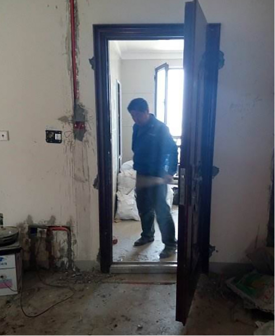 所以说不能太早也不能太晚,那么正常的时间点是在哪呢,其实就是瓦工快结束的时候或者说是贴地砖之前。如果家里有地砖,最好是在贴地砖之前把这个门换上,因为要有过门石抵过来,你要抵过来就得跟门贴齐,换上以后能够很严丝合缝的把它顶上。如果没有地砖的话,就等到瓦工快结束了再进场就可以了。