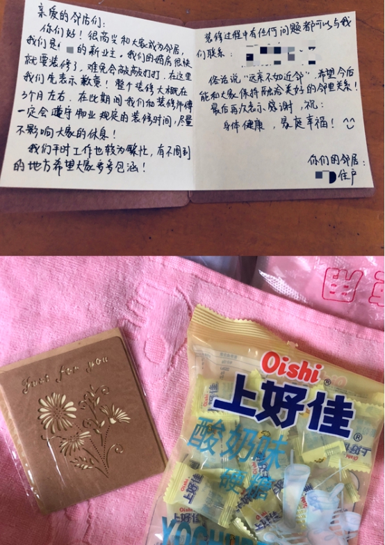 另外装修施工噪音比较大,会影响到邻居,所以最好是提前跟邻居打好招呼,或者是送一些小礼物,不用太贵重的礼物,一些糖果或者是水果都可以。也可以不送礼物但是要打招呼,可以自己写小卡片告诉邻居或者是微信群里通知一下,提前通知一下邻居们都会理解。
