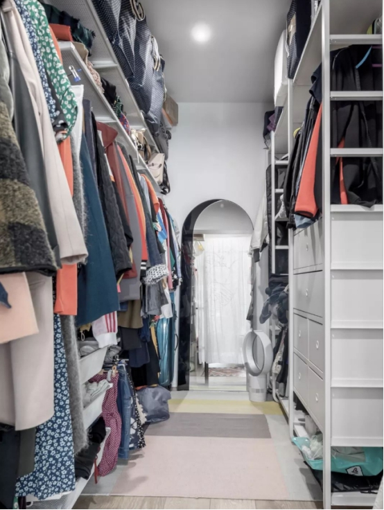 有的户型卫生间外面是有走廊的,那么就可以把通道的尽头,这个地方利用起来做衣帽间,这样布局不仅能充分利用空间,还可以方便洗完澡更换衣物,拿取也很方便。