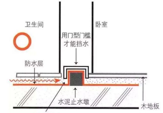 如果是没有经验的装修队伍,就是这么简单的去处理掉了。业主也觉得没有什么,买一个过门石一安就行就行了,反正不断不裂就行了。但实际上这个小小的过门石是关系到你家整个客厅房间会不会漏水的问题。