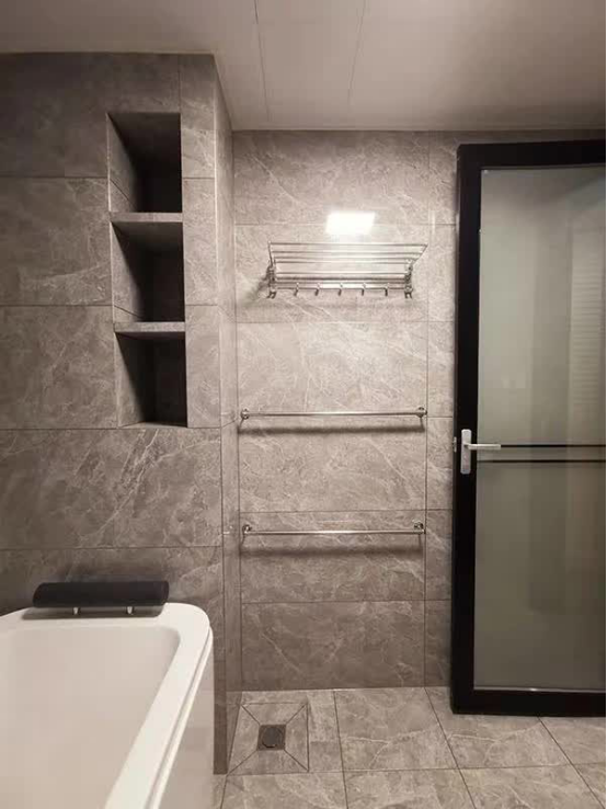 卫生间空间可以利用墙体做一些壁龛,可以收纳很多洗浴用品,还有做一些隔板或者是一些不锈钢的挂架可以收纳卫生间里一些必要的用品。