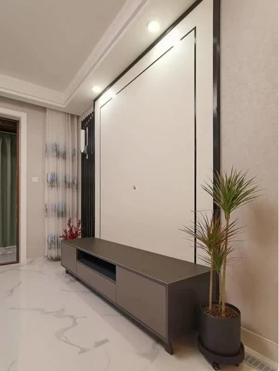 还有在客厅装修的时候尽量简约,可以不用做吊顶,用石膏线简单做一圈装饰就可以。电视背景墙也不用做的过于复杂,可以做简单线条装饰就好,或者是做投影。另外客厅茶几不要买太大的,茶几太大加上沙发,那么客厅就会显得拥挤,可以买一个简约的小桌子,即满足了茶几功能又节省空间,这样看着更大气。