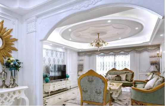 这样花哨的风格一般父母辈的会喜欢,是不适合现代的年轻人的,现在都是比较流行不做吊顶,简单走一圈石膏线,搭配一些筒灯射灯效果非常,简洁又好看,关键还省钱!