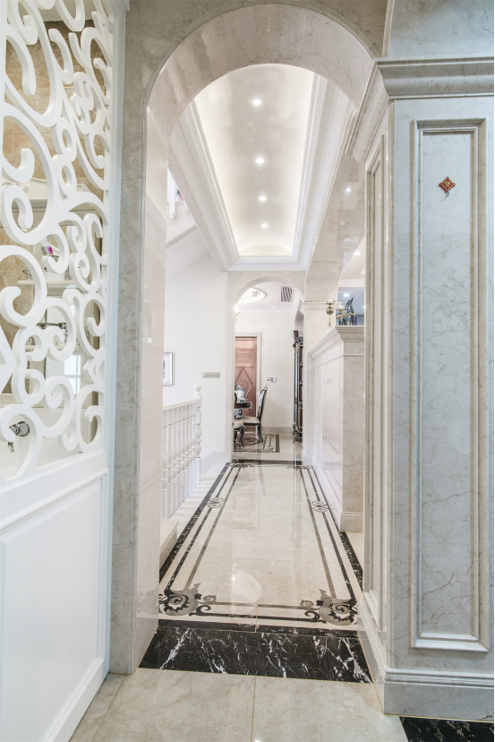 走廊除了光源要注意,还有可以根据风格来做一些造型,比如地中海风格或者一些欧式风格,作用圆弧造型也是很不错的。还有走廊和其他空间是不一样的,所以最好做一个区分,可以利用瓷砖拼花来区分空间,视觉上效果很更好。