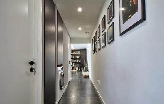 走廊过道布局可以做储物装饰的作用,还可以做成多功能区比如可以利用墙体做内嵌的洗衣机柜,洗衣机烘干机都可以放在这里,因为是内嵌的,并不影响走路,实用又有颜值,是非常棒的设计。不过这种设计要砸一些墙体,要注意一定是非承重墙才可以砸,如果是承重墙那么就不用动了。不要为了这一点的小方便而忽略房子的结构安全。