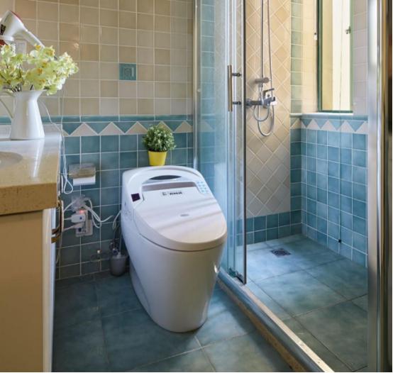 马桶边上放一个插座,现在可能使用的是普通马桶,但是后期可能会使用智能马桶盖,或者是一体智能马桶。那么预留好插座电源是很有必要的,如果水电施工没有预留,后期想用的时候再施工会很麻烦。为了提高幸福生活有智能马桶是避免不掉的,这个智能马桶我家长期在用,冬天的时候屁股坐上去是暖的。然后夜里上厕所的时候都不用开灯,这个马桶里面会有蓝光,会指引你这个方向。那还有一个妇洗的功能,包括一些杀毒杀菌功能。所以说这是幸福生活必备的设施。