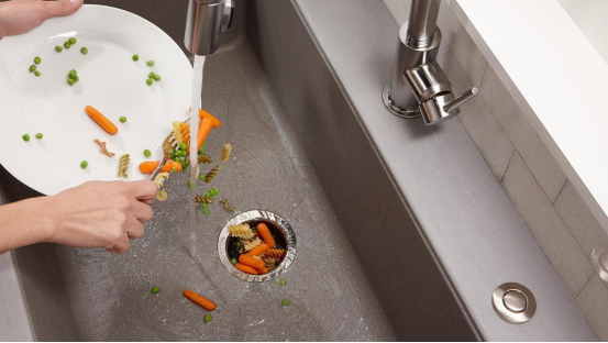 那么如果是安装了垃圾处理器的,一般都是这么处理厨余垃圾的呢?首先一些剩菜剩饭,不用通过过滤网过滤了,直接就可以倒进垃圾处理器,垃圾处理器进行打碎,然后就直接冲进下水道里了,直接节省后面倒垃圾桶再扔到楼下的步骤。这样是不是很方便呢,让厨房也更干净整洁了。