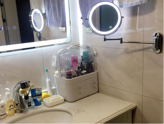 卫生间会安装一些化妆镜,常规的镜子一般都是安装在墙上,或者是镜柜安装在柜子上,基本上都固定好的,在实用的时候想要调整角度或者是远近那么就要人的身体来调整,非常的不方便。那么有什么可以方便的设施呢,那就是带伸缩折叠的小镜子。