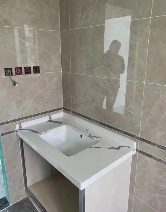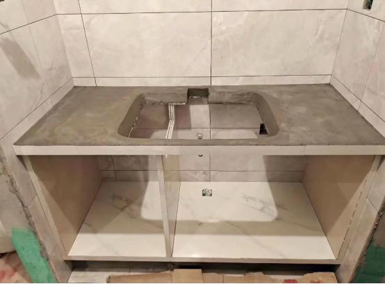 台面用水泥钢筋浇筑,最后安装石材台面台盆。