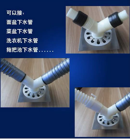 阳台的下水地漏也非常重要,不要直接把下水管插到地漏里就完事,其实有时候水流比较大水管会飘上来,那么就会导致漏水,在安装地漏是时候我们可以用这种三通地漏,可以同时与洗衣机个洗手池的下水管对接,非常方便实用。