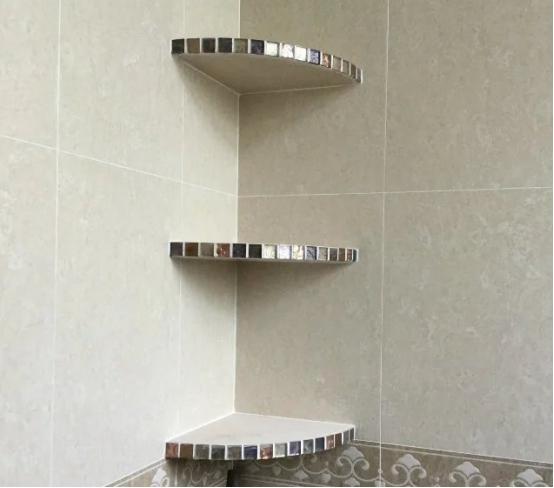 卫生间要做好收纳,边边角角都不要放过,特别是墙角可以放一些搁架来收纳一些洗漱用品。这种小隔板是在瓦工装修的时候安装的,是要卡进墙里面的,所以很结实耐用。有很多人在网上买的那种不锈钢的架子,这种架子其实并不会用,有的是需要用钉子钉的,那么在瓷砖上打孔就要小心,有可能会把瓷砖打碎。还有就是用胶粘的,这种在卫生间这样的潮湿环境下用久了就会脱落。最重要这种架子一旦有水渍看上去就会很脏,清洁也很麻烦。所以不如在装修时候做几个这样小隔板,好看还实用。