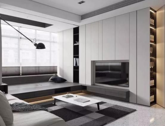 另外还有就是电视墙,很多人会在这上面花很多钱,会用一些比较贵的材料,同样是不实用的设计,基本过两年就会嫌弃,特别是户型小的房子,收纳空间不够用,还把电视墙这里浪费了。其实电视墙可以把它充分利用起来做收纳,可以做一排柜子,电视镶嵌其中,电视周围都是柜子,可能放很多东西。如果是年轻人不看电视的,那么就可以都做成柜子,这样整体感更强,不仅实用颜值也不差!