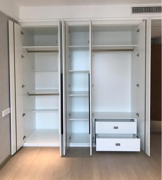 3、五金件也是不能忽视,好用的柜子要搭配好五金件,选择定制衣柜的时候要注意用的是什么牌子的五金件,检查一下是否带阻尼缓冲的铰链,带阻尼的可以慢慢关闭柜门,这样就避免开关柜门的时候夹到手。另外就是静音问题,测试一下铰链是否顺畅有没有噪音。
