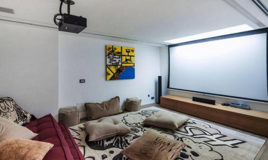 装修安装的时候要注意,电视机电线和网线要预留好插座和布管,这样可以把电线都藏起来,会更加美观,投影仪在水电装修时候就要确定一下位置,预留好插座,另外最好是做升降幕布,需要在吊顶的时候做隐藏式的,确定好尺寸就可以,这样会更加美观。