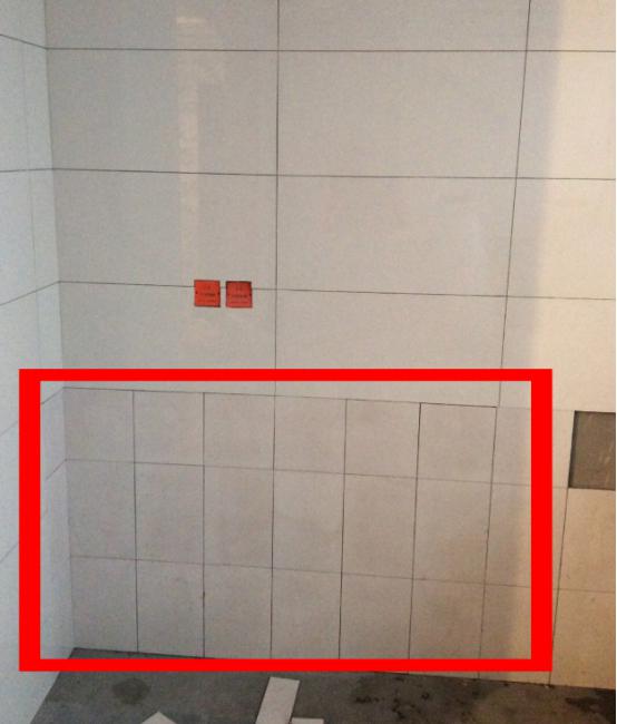 也就中间会露出一条瓷砖。那么我们在铺贴瓷砖的时候就可以把这些遮挡的区域,瓷砖换成
