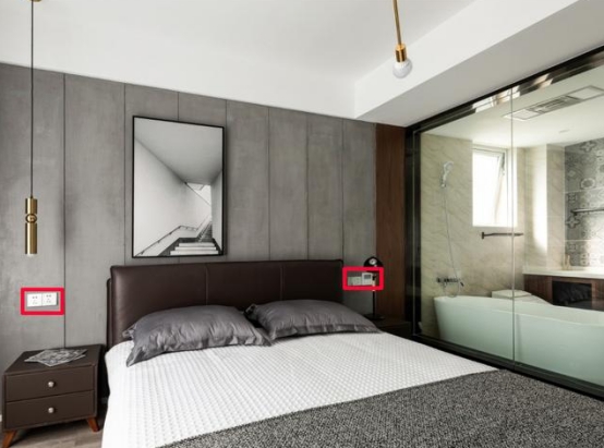 卧室安装双开双控开关,因为在床上也可以关灯,要不然睡意来了还得下床关灯,关掉了人也精神了。床头两侧的插座用单控无孔USB插座即可,也方便手机充电。最好是带开关控制的,这样就不用经常的拔充电线了。记得空调插座要使用三孔的。