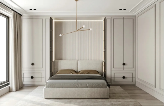 4、卧室是休息的地方,所以一定要安静,如果卧室和邻居是一墙之隔,那么噪音很容易就会传过来,所以墙面要做隔音的处理,可以对墙面进行软包,这样可以有效的阻挡一些噪音,另外窗户也是噪音的主要来源,最好选择隔音效果比较好的断桥铝门窗,这样也可以减少噪音的滋扰,让你更安静舒适的休息!