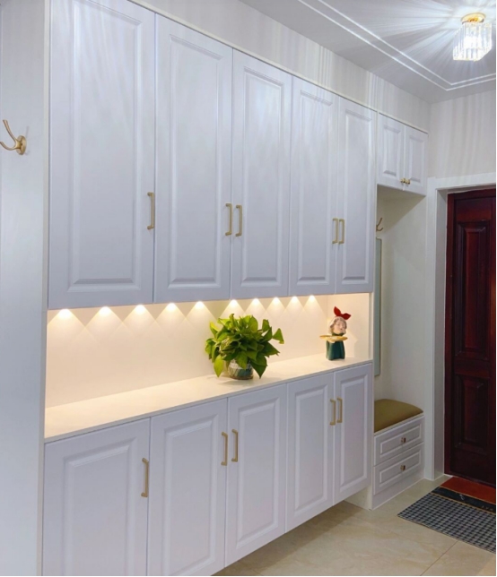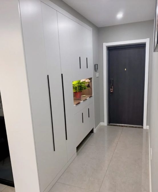 6、鞋柜柜门是要经常开关的,有些人为了美观会用反弹器,如果选择的是质量不好的很容易坏,坏了就关不严。所以如果你选择反弹器一定要选择好一些的品牌,同时可以根据你的装修风格选用把手或选用一体把手。