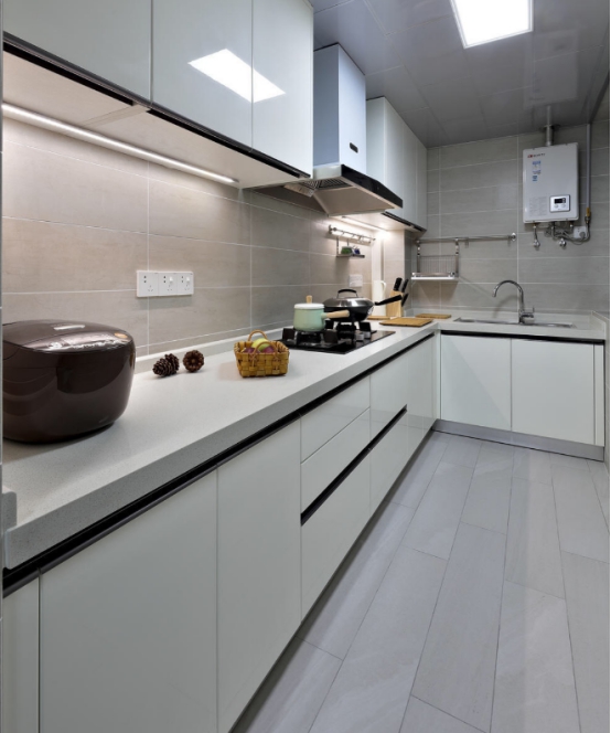 5、厨房台面的后档水条可安可不安,台面如果你选用石英石,最好选含百分之九十三石英沙的台面。这种台面硬度强密度高,使用寿命更长。