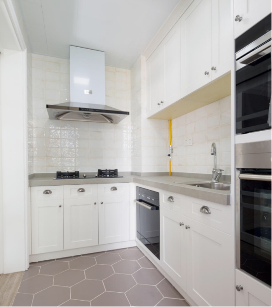3、开放式厨房油烟是大问题,所以要选择一个好一些的油烟机,顶吸的吸力大,但是噪音也是很大的,侧吸好看颜值高,不过吸力比较小,可以选择集成灶,吸烟效果会更好,时候开放式的厨房使用。