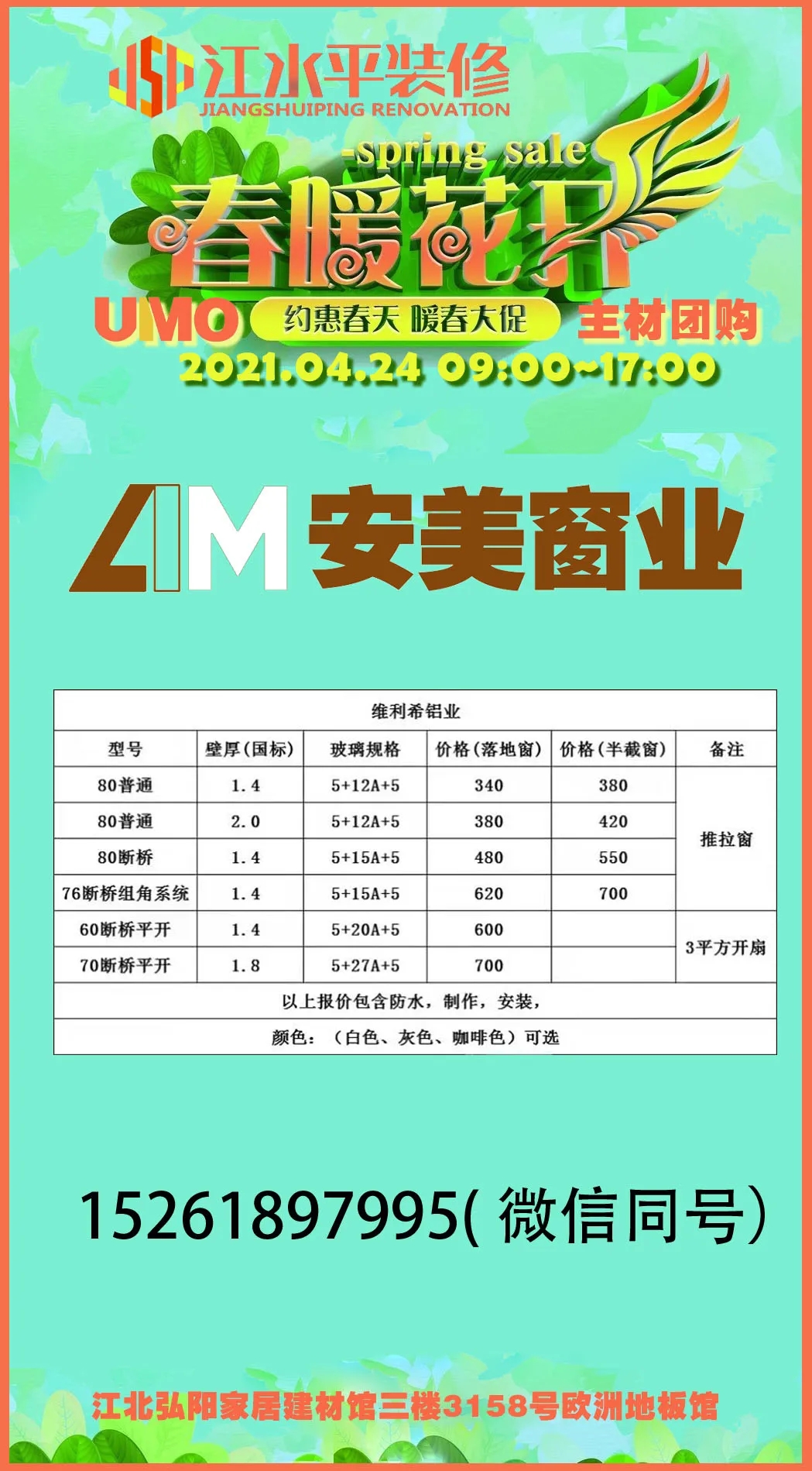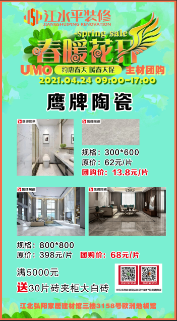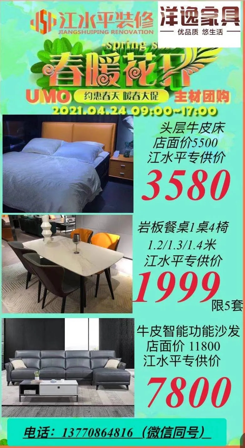 春暖花开的季节,江水平装修合作主材联盟–UMO又木主材联盟的商家们要给大家送福利啦!