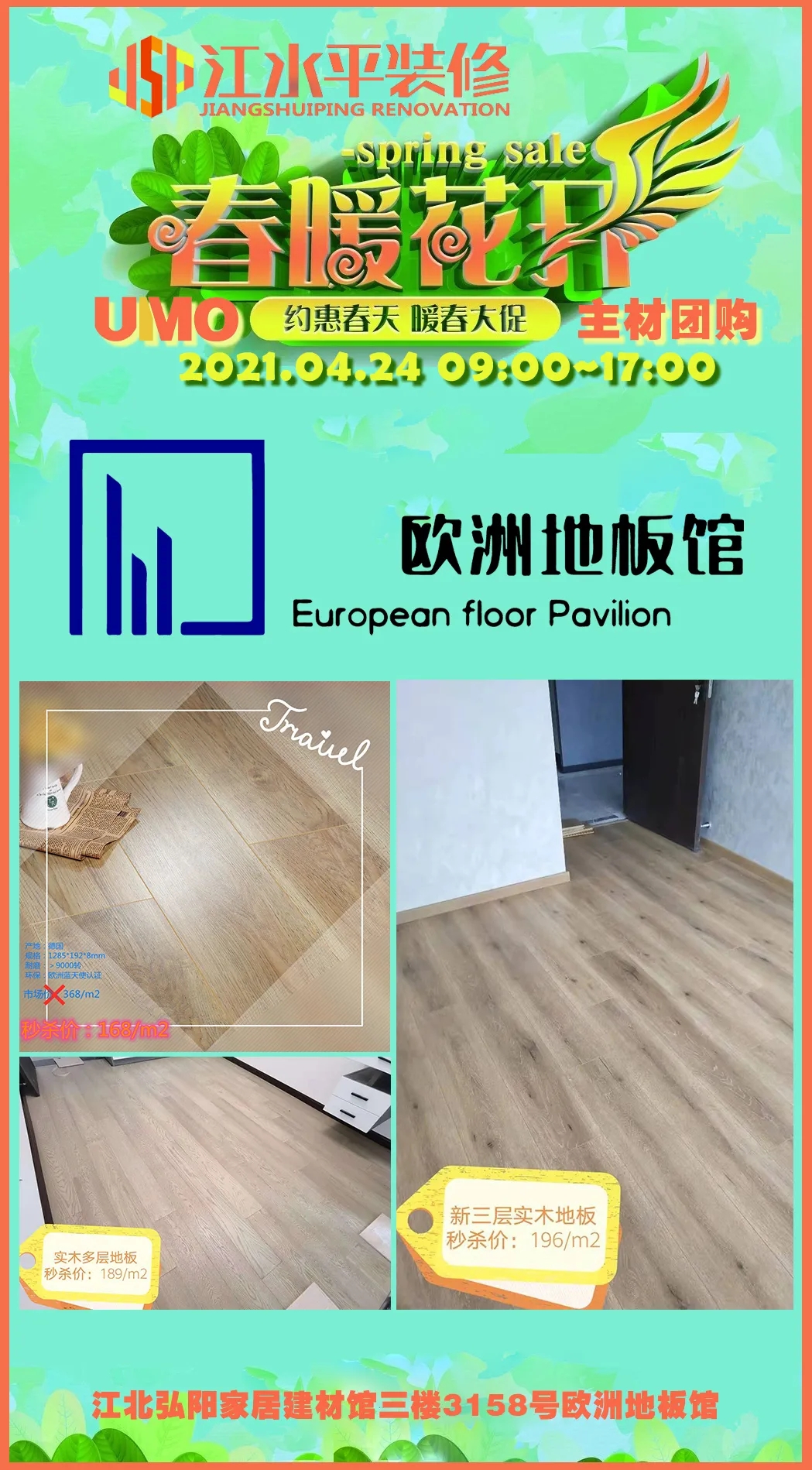 活动地点:桥北弘阳家居建材馆三楼3158号 欧洲地板馆