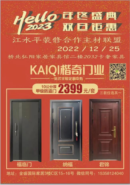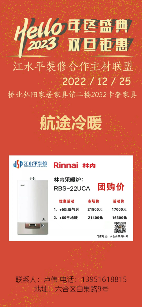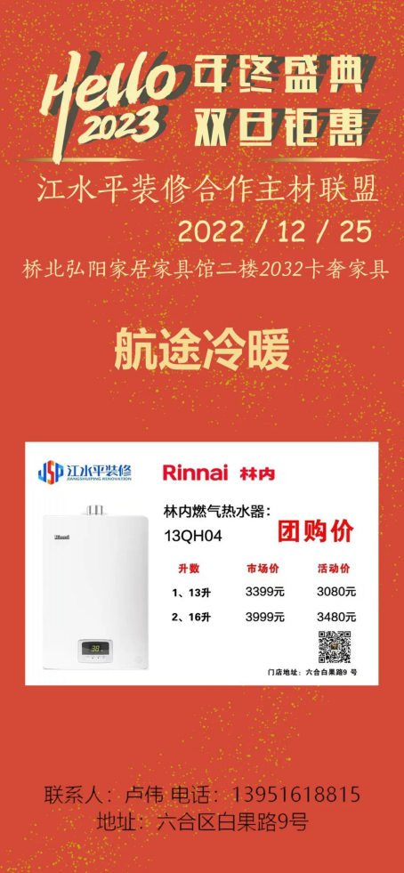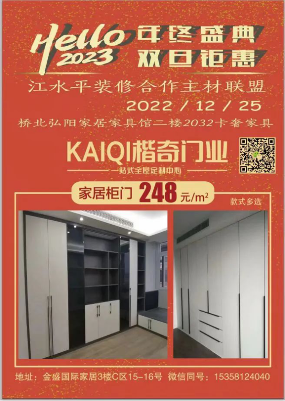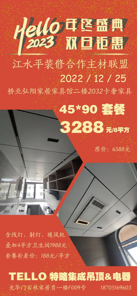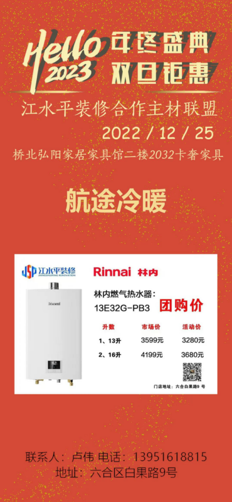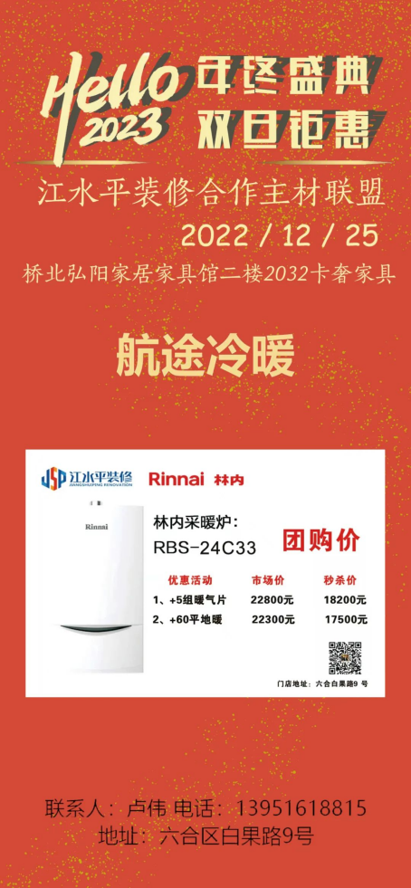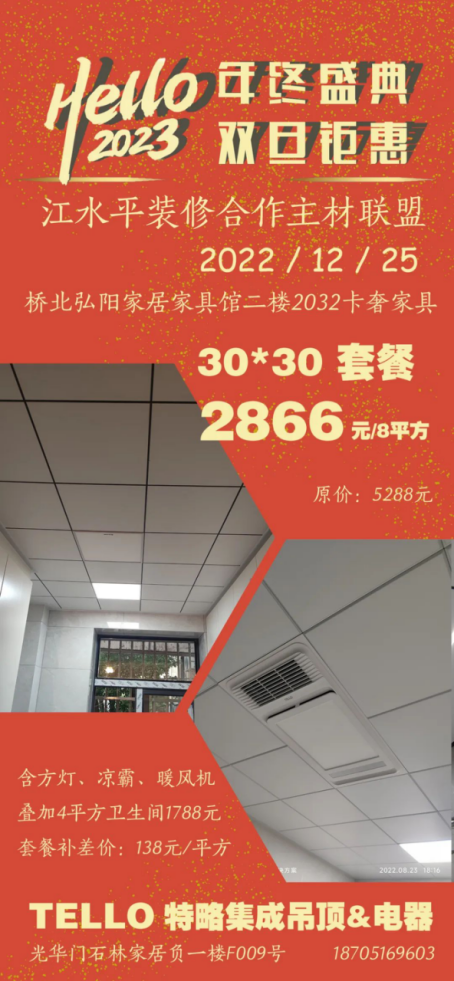 江水平主材联盟的商家们特地给装修的朋友们向工厂申请了抄底福利价,将在2022年12月25日(周日)的团购会上回馈所有对我们信任和支持的好朋友们!