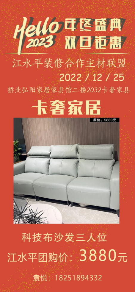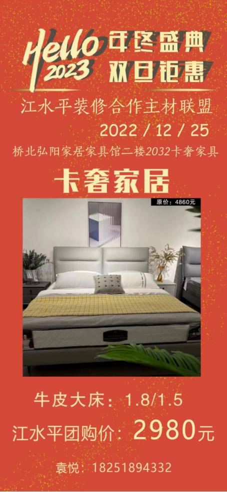活动地址:桥北弘阳家居家具馆二楼2032号 卡奢家居门口