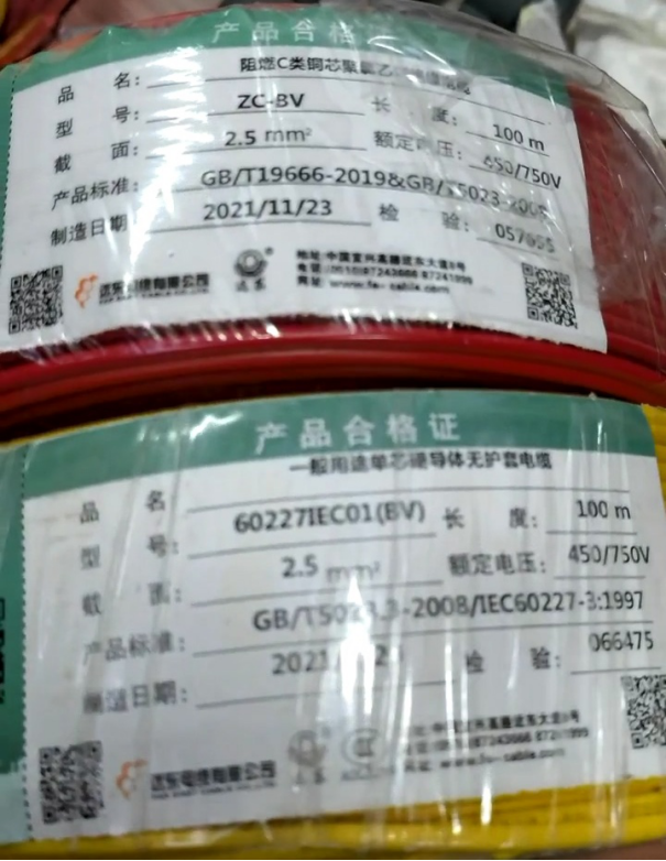 最后商家拿出两捆远东电线介绍说,你们江水平装修队选用的是这种带有阻燃标示的电线,而一般装修公司都是选用普通的远东电线。