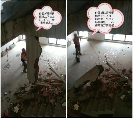正确的做法是,先从上面拆除,一点一点的往下拆除,这样不会出现隐患,如果是拆除门洞,那么就会需要切割机,这样切割的整整齐齐的。
