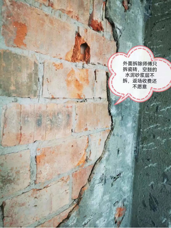 另外老房墙体一般表面会有砂浆,拆除时候一定要把这层拆除掉,直接拆除到红砖。