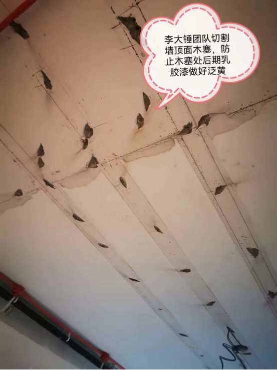 有些老房墙体会有木塞子,在拆除的时候一定要清理出来,不然后期刷乳胶漆容易泛黄。