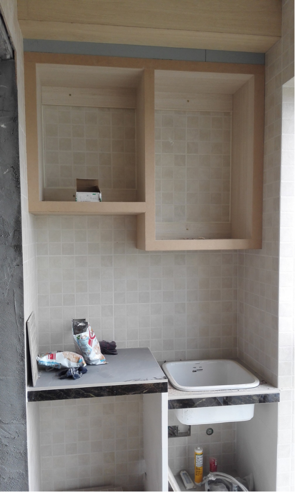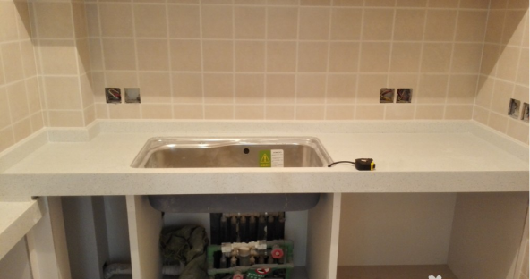 南京威尼斯水城装修工地, 厨房做的是江水平装修特色砖砌橱柜