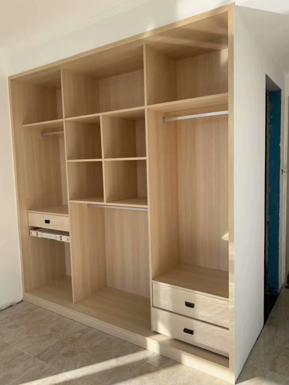 南京星叶枫庭装修工地,全屋柜子选择木工现场打造